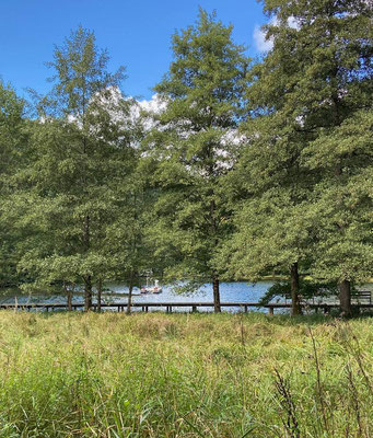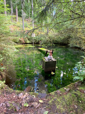 Nach einer ausgiebigen Rast, mit guter Verpflegung durch das Hüttenteam, wurden die letzten Kilometer unter die Füße genommen. Vorbei am Kohlbrunnen wurde der Helmbach-weiher erreicht. Von hier fuhren die Wanderfreund*innen mit den Autos zurück nach Lambrecht.