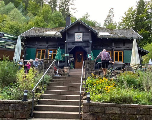 Nach dem überqueren der B 270 gelangen die Wanderfreund*innen in das Tal der Moosalb und ein schöner Pfad führt zum Naturfreundehaus ins Finsterbrunnertal, das zur Rast einlädt. Gestärkt werden die letzten Meter unter die Füße genommen um zur Bushaltestelle Eisenschmelz zu gelangen.